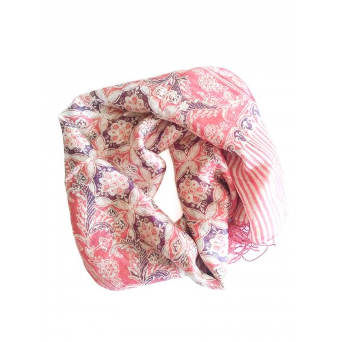 A fresh Spring batik scarf decorated with geometrical (ceplok) kawung and nitik truntum motif. A beautiful variation of batik Kawung with it's seamless connections. Kawung is one of the oldest designs, and was reserved for royal court. Inspired by the balanced palm fruits shape, it's a symbol of perfect self control, and honesty. Nitik truntum a symbol of blooming love. This scarf brings a message that there is a perfect self control and honesty are around the perfect love. See more motif story and batik process below.