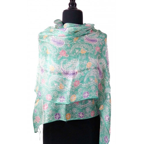 Using high quality silk, soft, smooth and lustrous. Drapes well, flow nicely, beautiful design and color. A beautiful accent or a blend to your outfit for either a dressy or a casual events.