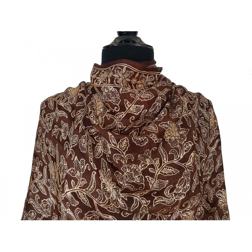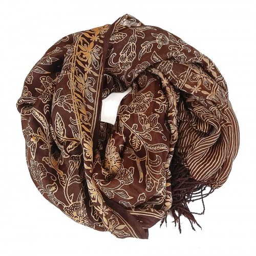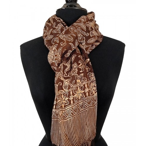 Batik scarf decorated with graceful fertile vines, happy leaves, buds and flowers. Monochrome in color, yet clean and elegant. This motif created with wishes for a flourished life, bringing many blessings and happiness. See more motif story and batik process below.